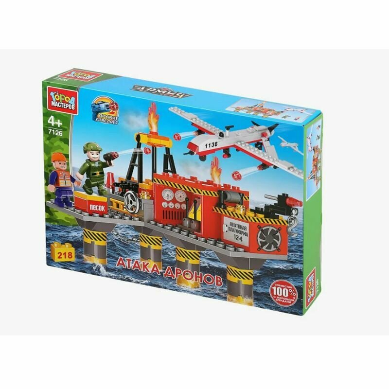 Конструктор "Город мастеров" атака дрона на нефтебазу, с фигурками, 218дет. в русс. кор.