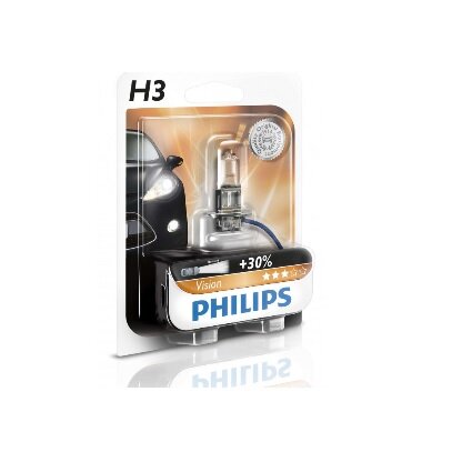 Лампа автомобильная галогенная Philips Vision (+30% света), 12336PRB1, H3, 12V, 55W, PK22s, 3000K, 1500lm (блистер)(1 шт.)