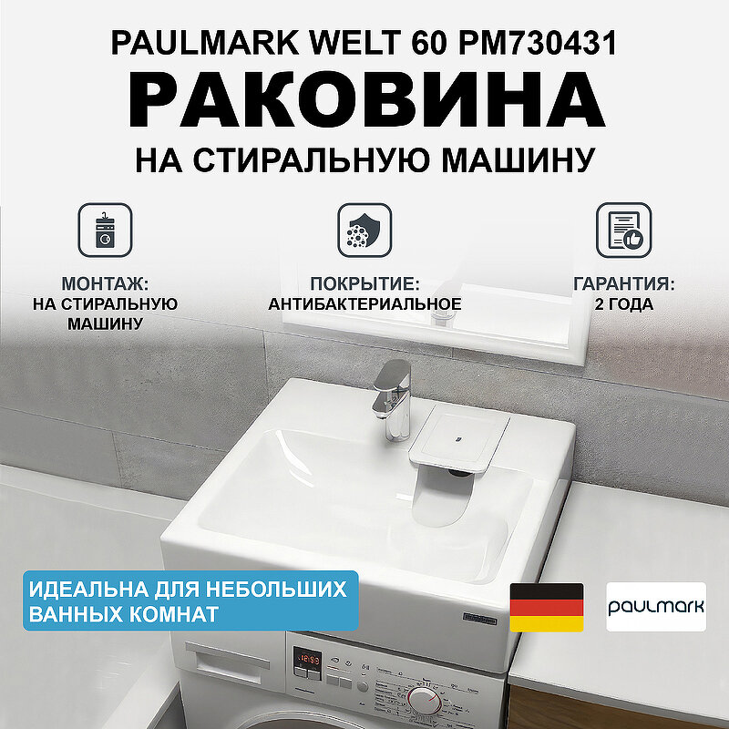 Раковина над стиральной машиной Paulmark WELT 730431 белая 60х60 с комплектом