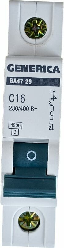 Выключатель автоматический Generika ВА47-29 1Р 16А 4,5кА х-ка С