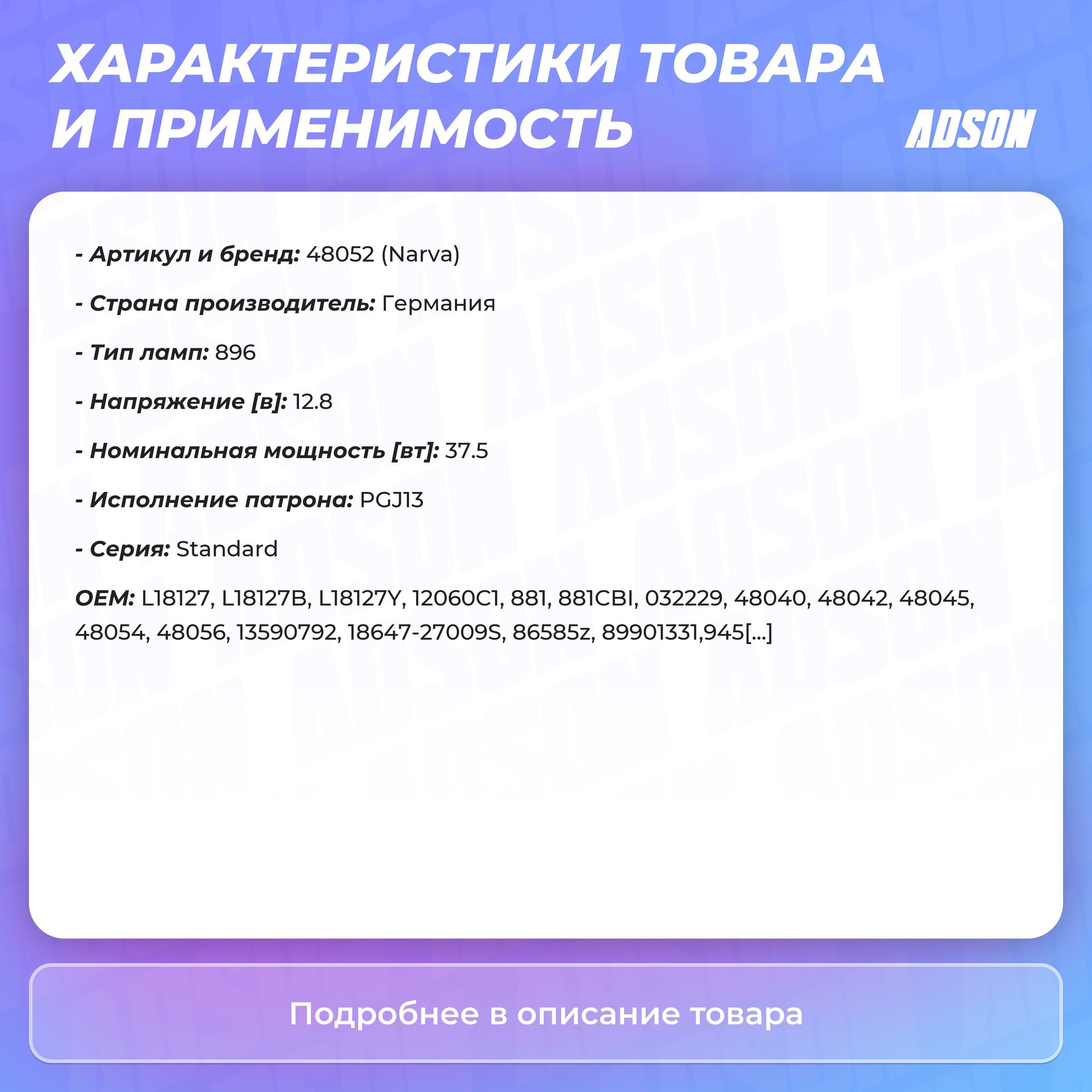 Купить NARVA 48052 48052 896 12V 37.5W А/лампы - NARVA NARVA