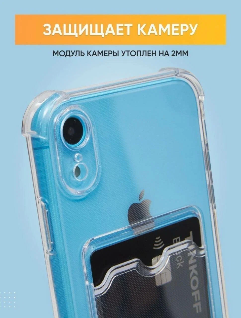 Защитный силиконовый чехол с картхолдером для пластиковых банковских карт, прозрачный кейс бампер с кармашком на Apple iPhone Xr