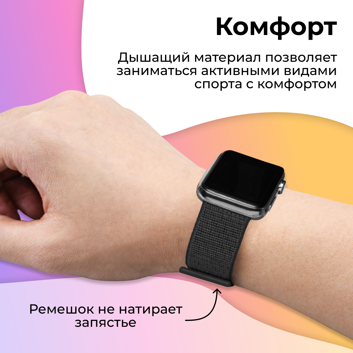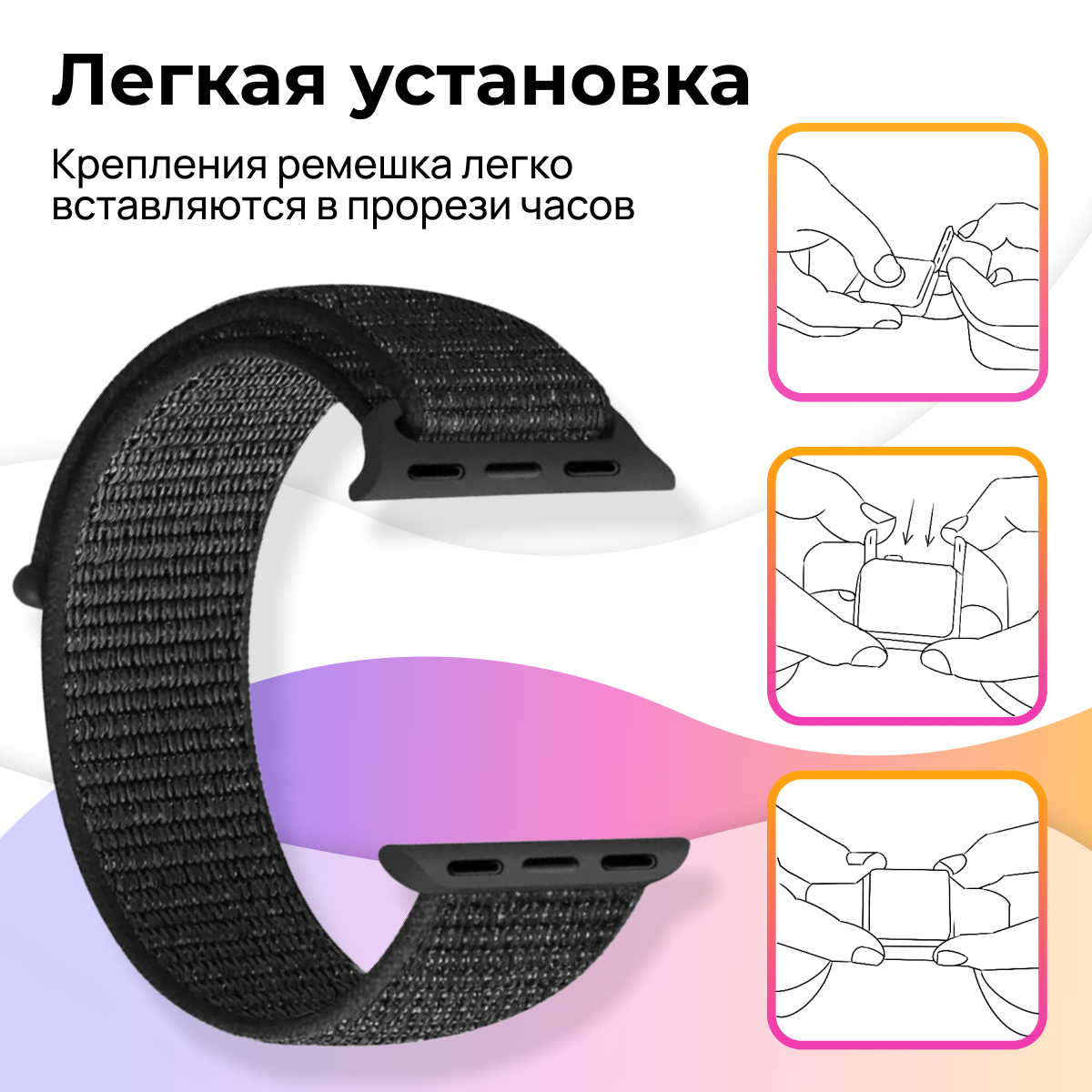 Нейлоновый ремешок для часов Apple Watch series 1-9, SE, Ultra, 42-44-45-49 mm / Браслет на липучке для Эпл Вотч серии 1-9, СЕ 42-44-45-49 мм (Черный)