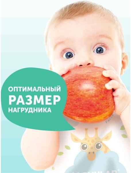 | Дополнительная информация | 3 слоя: защитный, впитывающий и контактный для нежного прикосновения к коже малыша; наличие липучек с внутренней стороны для плотной фиксации к одежде малыша; надрезы на горловине для регулирования степени облегания шеи малыша |