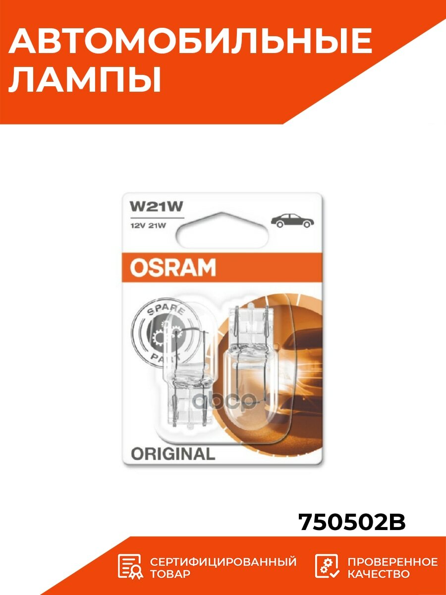 Купить Osram 7505-02B Автолампа 12V W21W блистер 2шт.