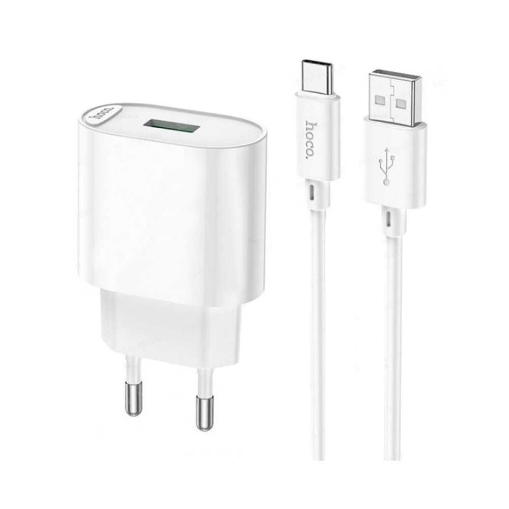 Сетевое зарядное устройство HOCO C109A / быстрая зарядка / Сетевой адаптер USB + Кабель Type- C/ 3.0А, белый