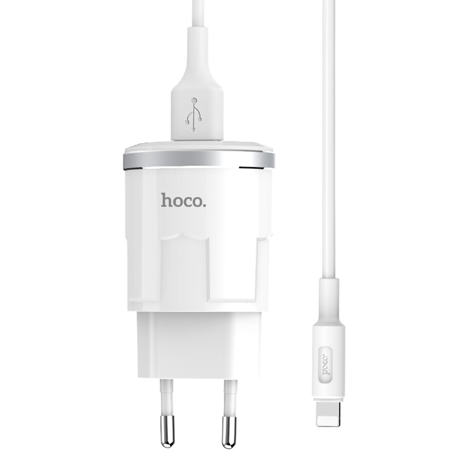 Купить Сетевое зарядное устройство HOCO C37A Thunder 1xUSB с Кабелем USB - Lightning, 2.4A, 10.8W, белый