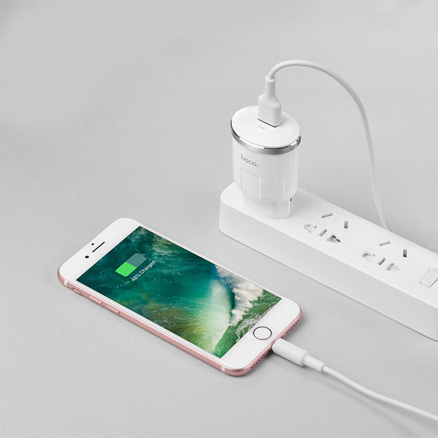 Зарядное устройство HOCO C37A Белый ЗУ с USB + кабель IOS Lighting (5B, 2400mA)