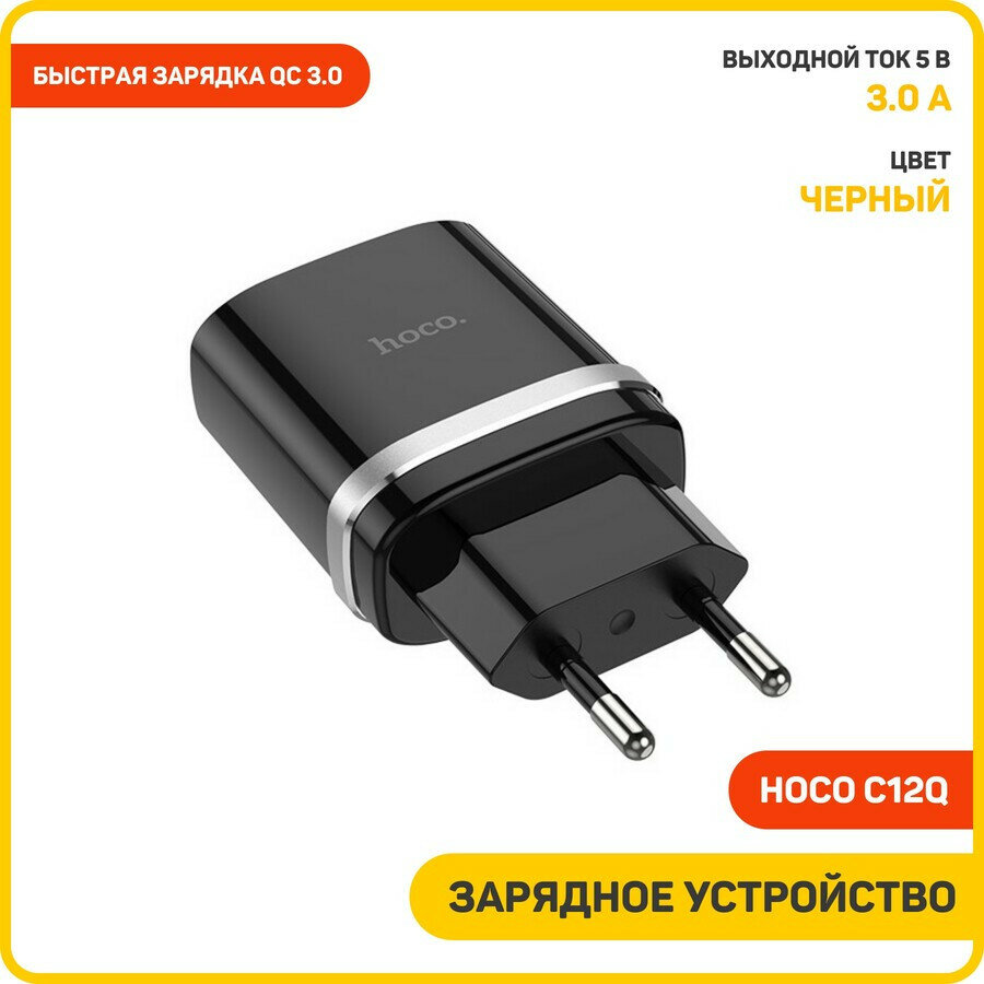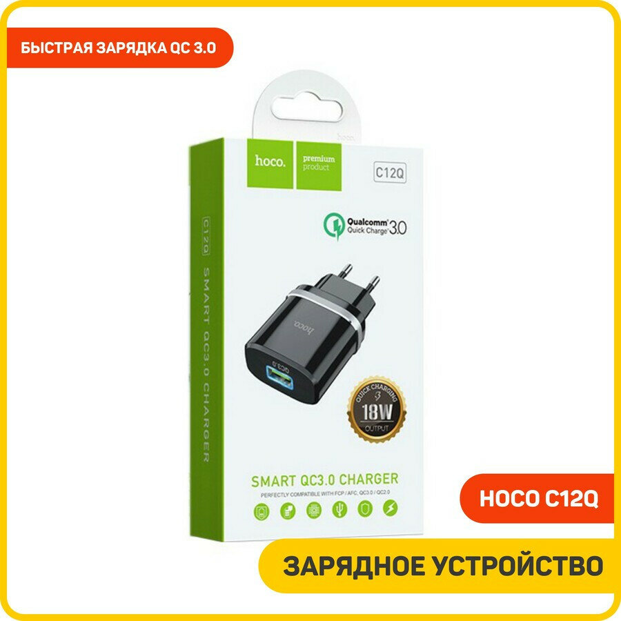 Зарядное устройство HOCO c12Q Smart QC3.0, один порт USB, 5V, 3.0A, черный