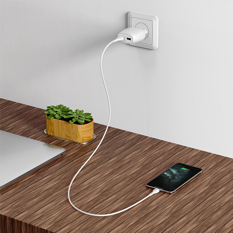 Купить Сетевое зарядное устройство HOCO C78A Max energy 2xUSB с Кабелем USB - Lightning, 2.4A, 10.8W, белый