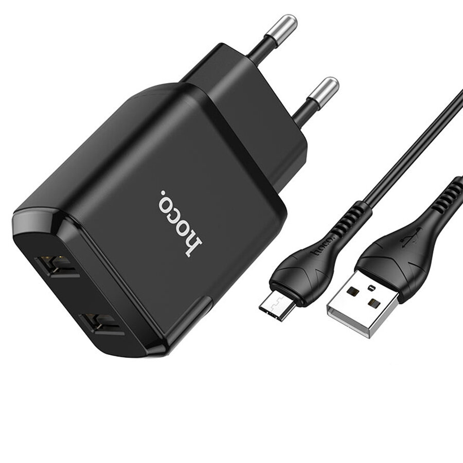Сетевое зарядное устройство HOCO N7 Speedy 2xUSB с Кабелем USB - Micro, 2.1A, черный