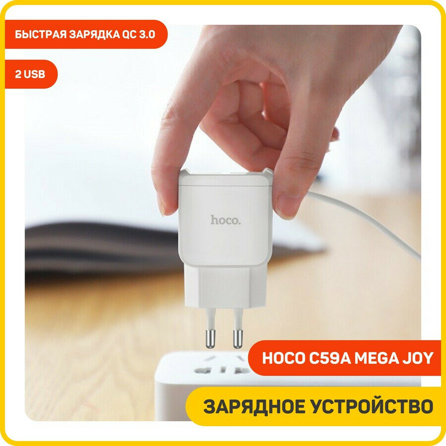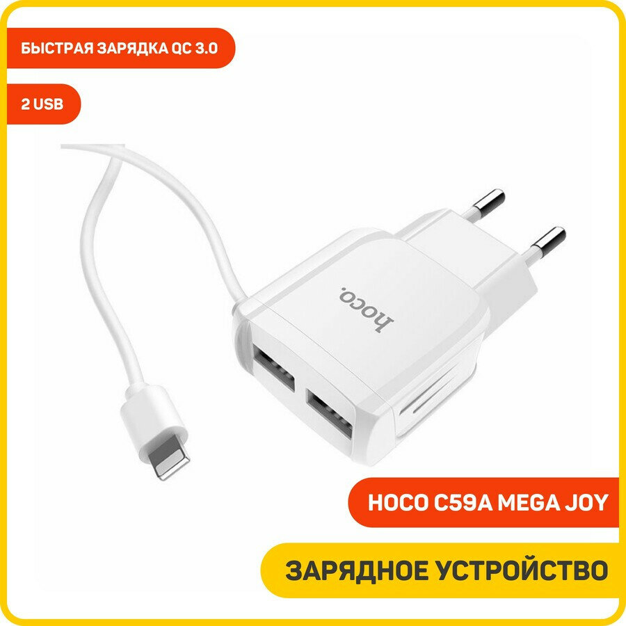 Сетевое зарядное устройство (СЗУ) Hoco C59A Mega joy (2 USB) + кабель Lightning, 2.1 А, белый