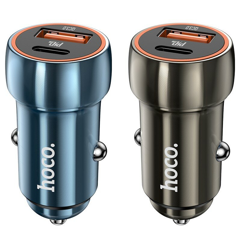 Автомобильное зарядное устройство Hoco Z46A быстрая зарядка PD20W /QC3.0, 18W, серый металлик