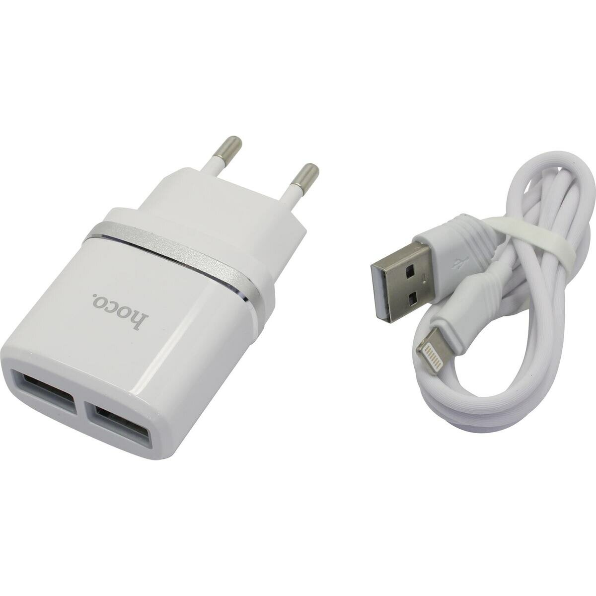 HOCO HC-47766 C12/ Сетевое ЗУ + Кабель Lightning 1m/ 2 USB/ Выход: 12W/ White