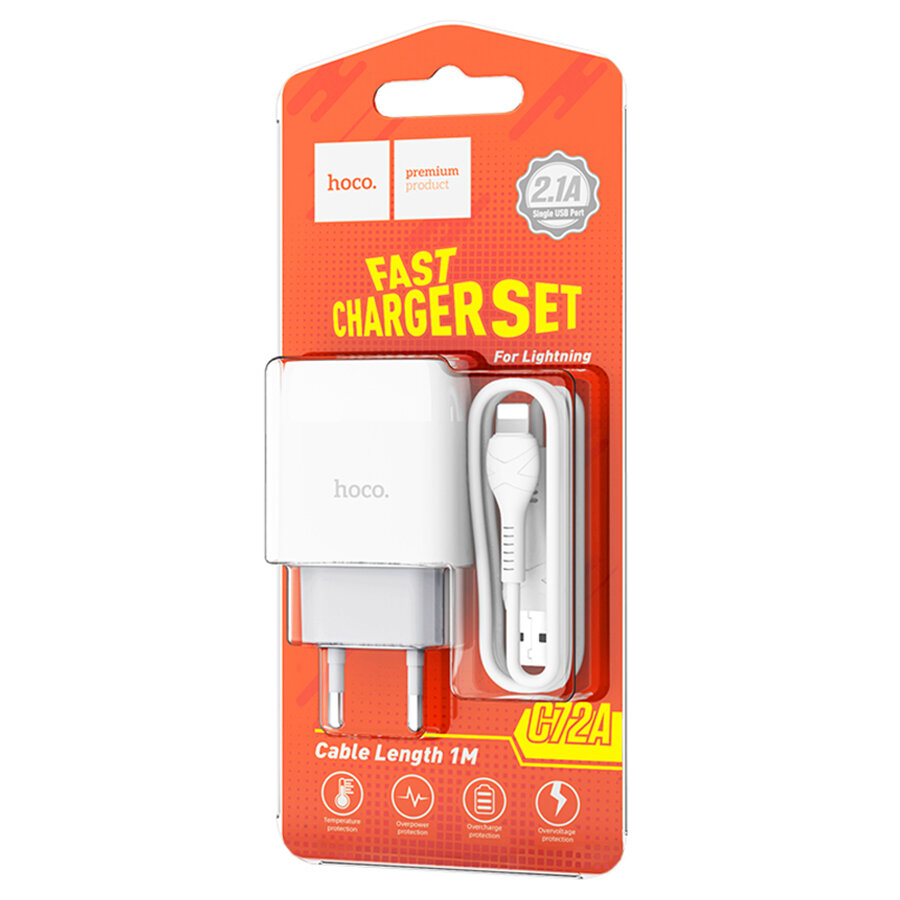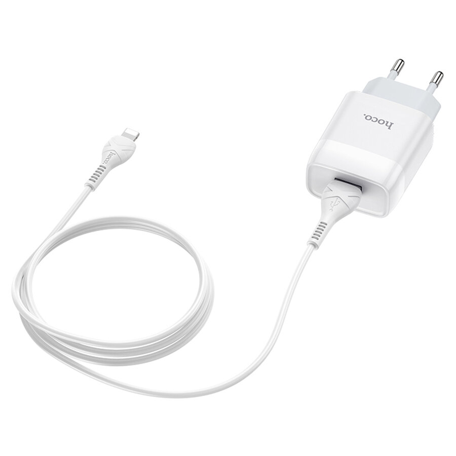 Сетевое зарядное устройство HOCO C72A Glorius single 1xUSB с кабелем USB - Lightning, 2.1A, белый