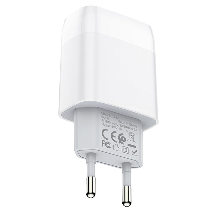 Купить Сетевое зарядное устройство HOCO C72A Glorius single 1xUSB с Кабелем USB - Lightning, 2.1A, 10W, белый