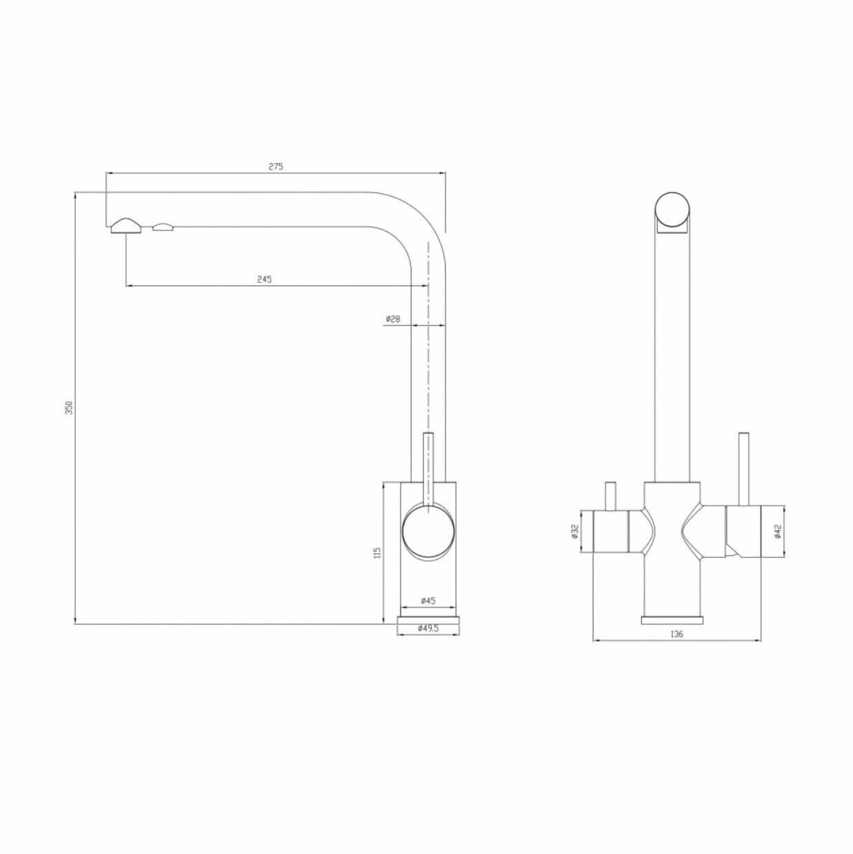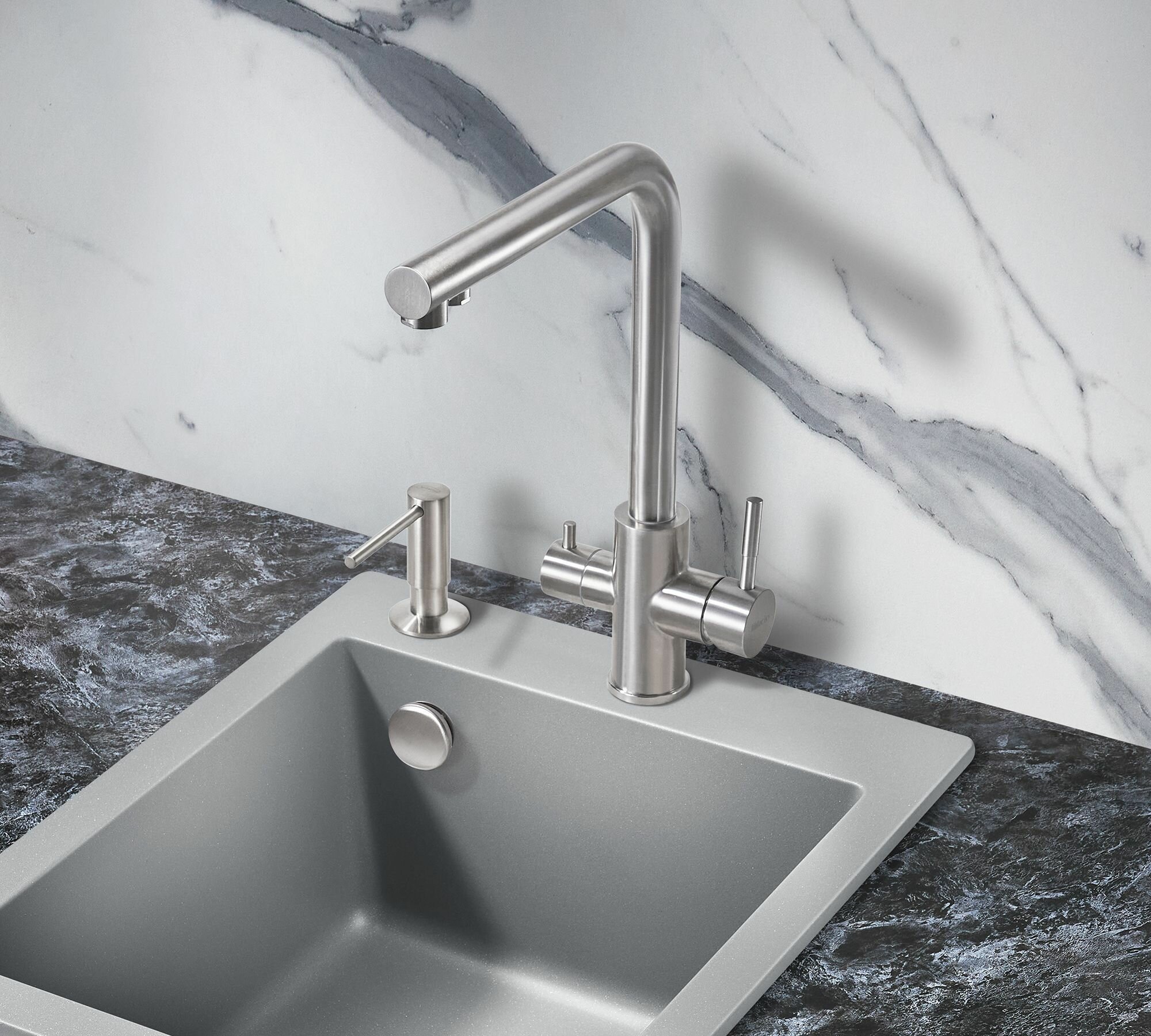 Смеситель для кухни под фильтр с краном для питьевой воды Milacio Ultra ( MCU.553. SS ) нержавеющая сталь