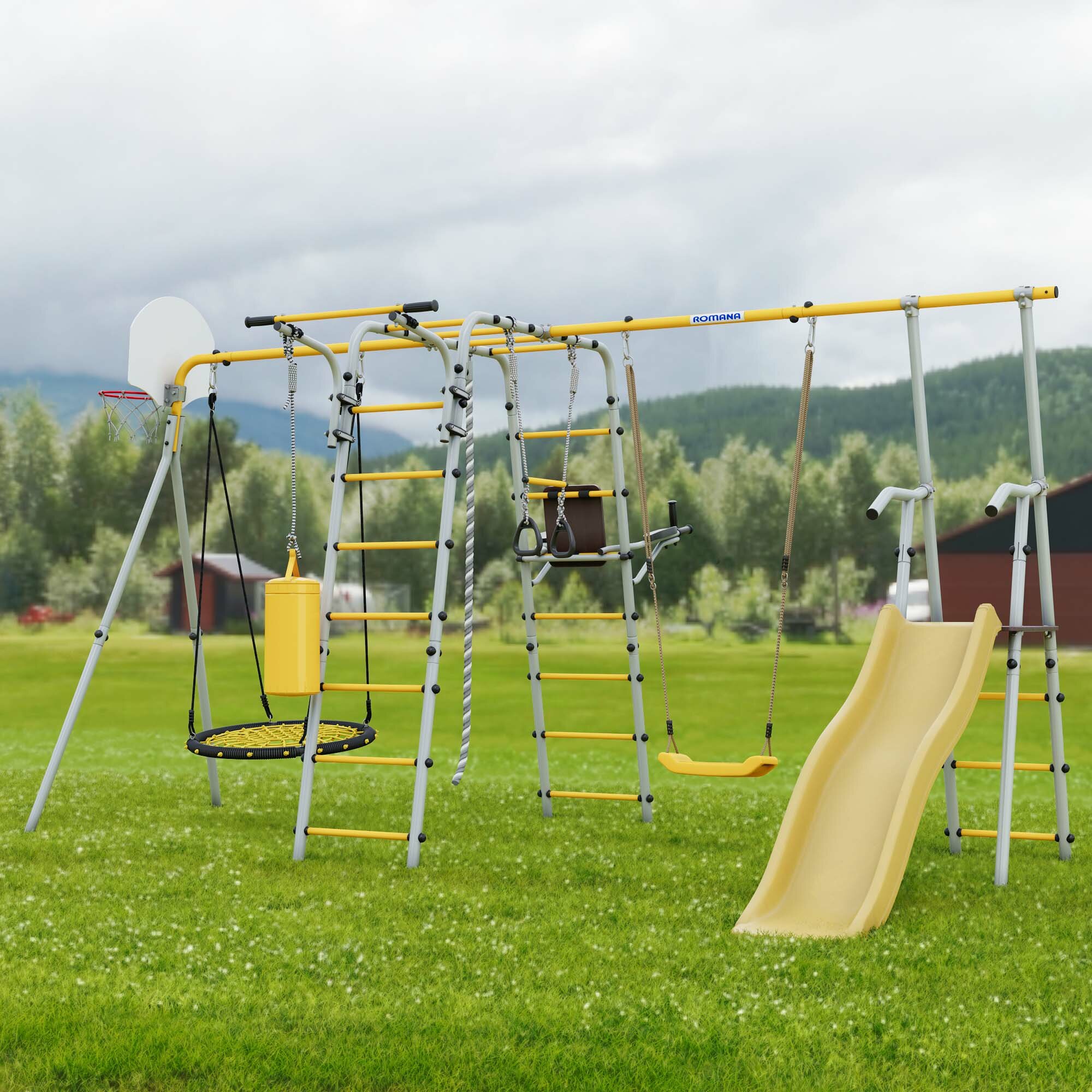 Детский спортивный комплекс Romana Fitness + пластиковые качели с103.20.05, grey/yellow