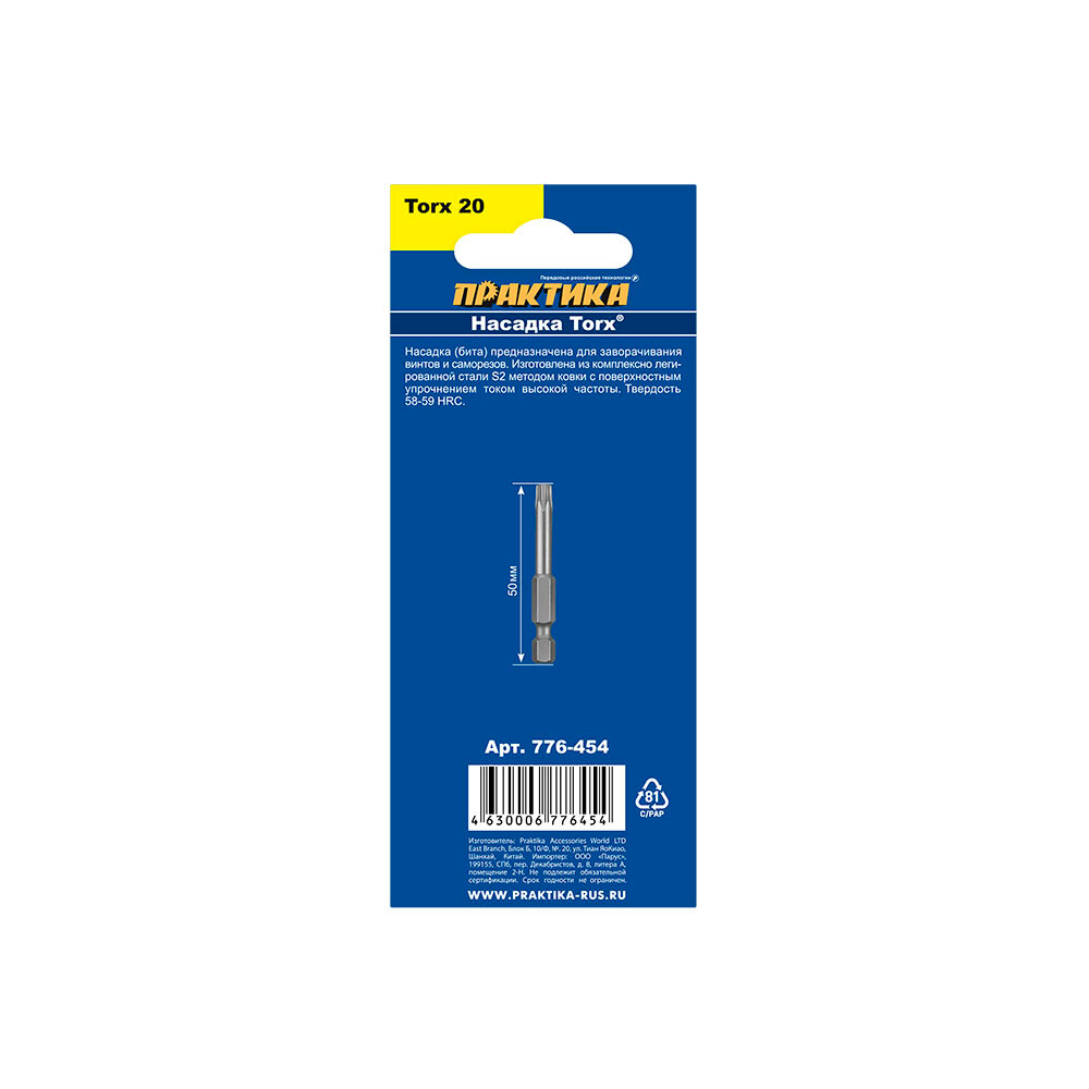 Бита "Профи" Torx Tamper-20 х 50мм (2шт), блистер ПРАКТИКА 776-454