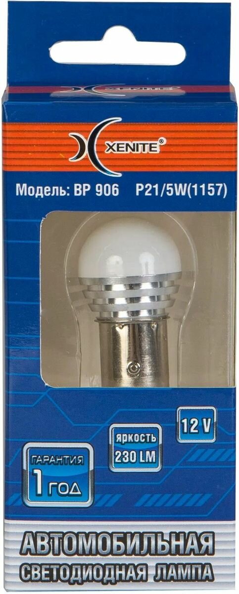 Лампа автомобильная светодиодная XENITE 1009592, P21/5W, 12В, 3Вт, 5000К, 1шт