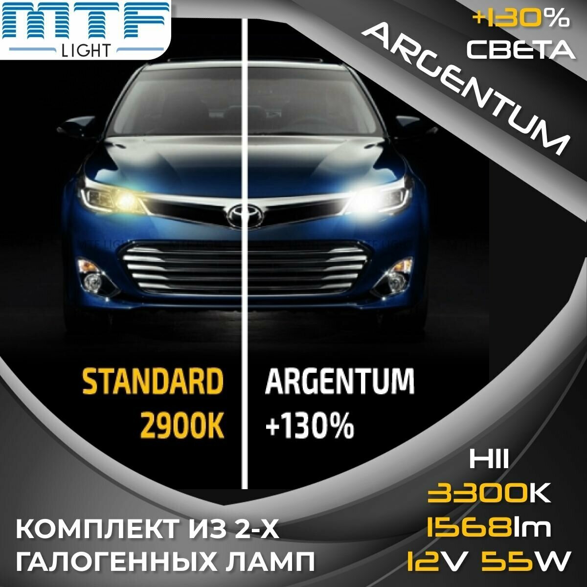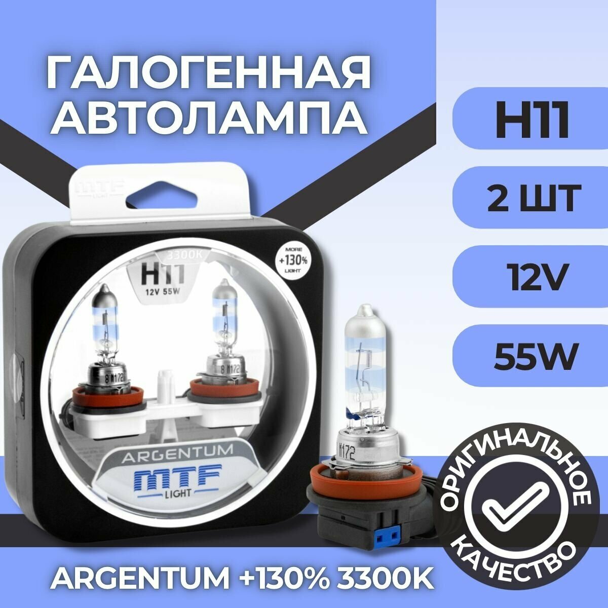 Галогенные автолампы MTF Light серия ARGENTUM +130% H11, 12V, 55W (комплект 2 шт.)