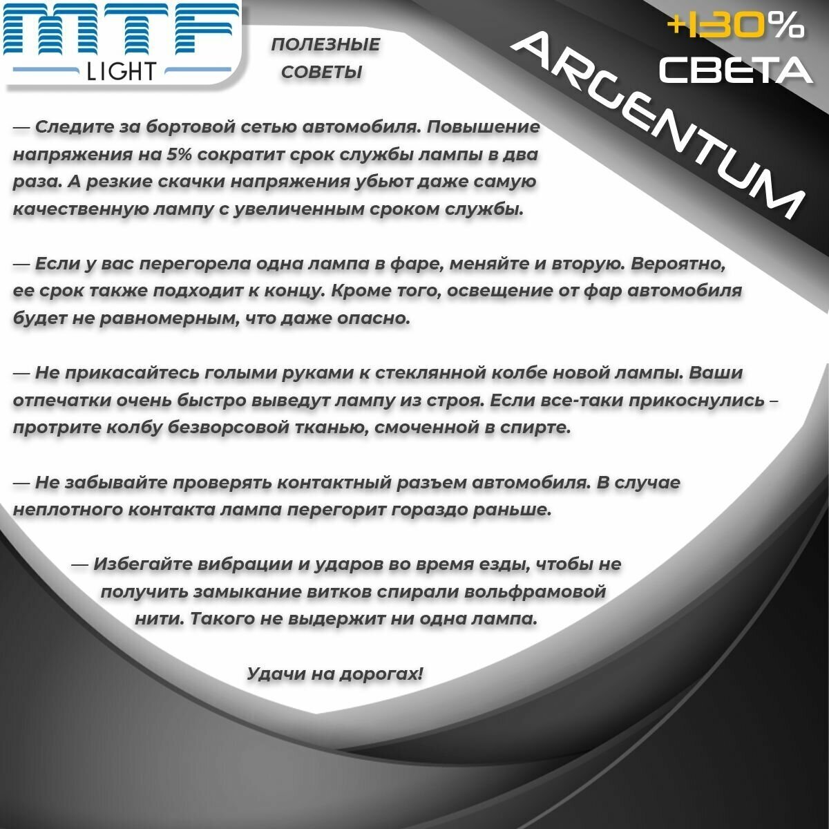 Комплект галогенных ламп H11 MTF light series Argentum со специальным инновационным покрытием и нить накаливания повышенной эффективности обеспечивают прибавление света на 130% (3500K) комп.2шт.