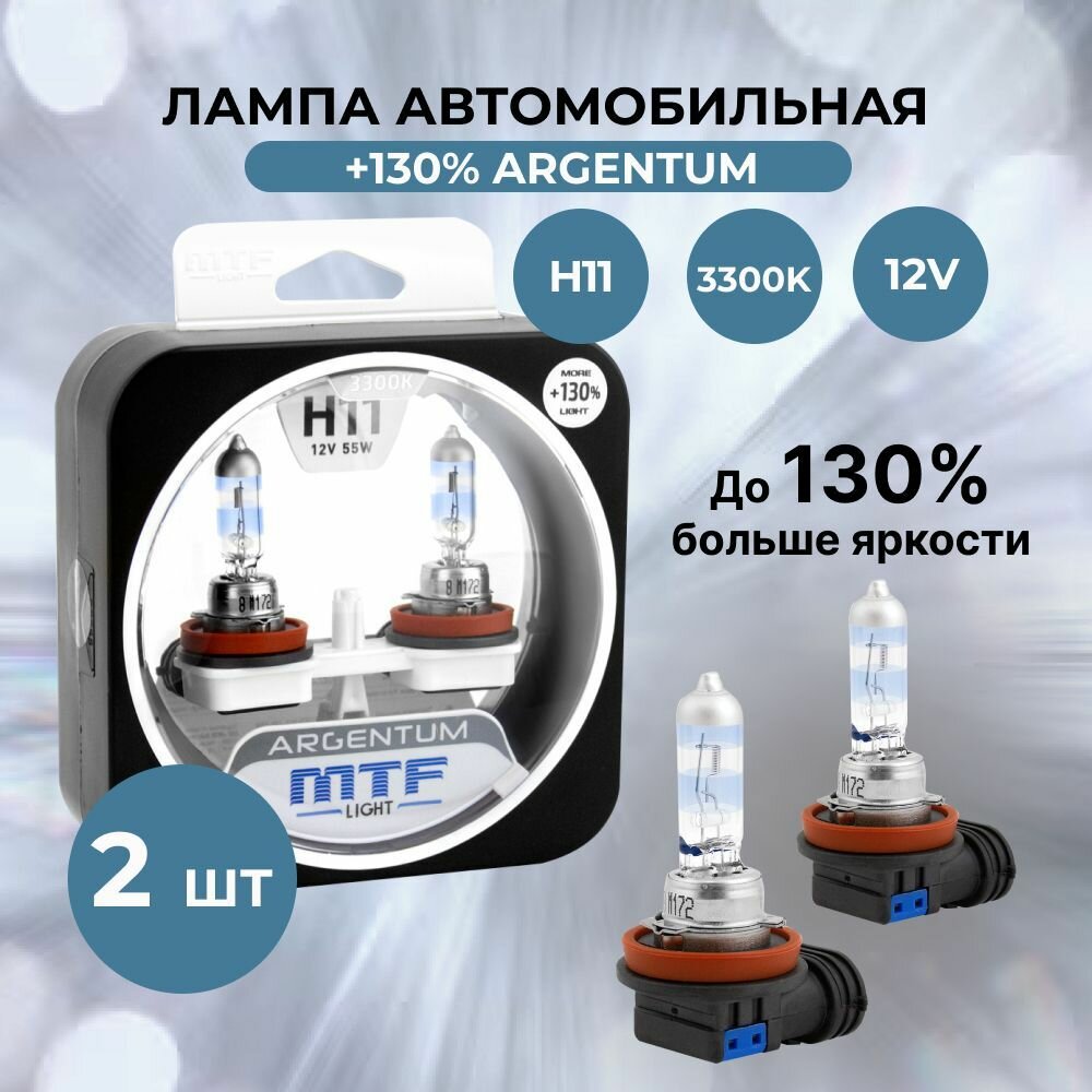 Галогенные автолампы MTF Light серия ARGENTUM +130% H11, 12V, 55W, комплект 2 лампы
