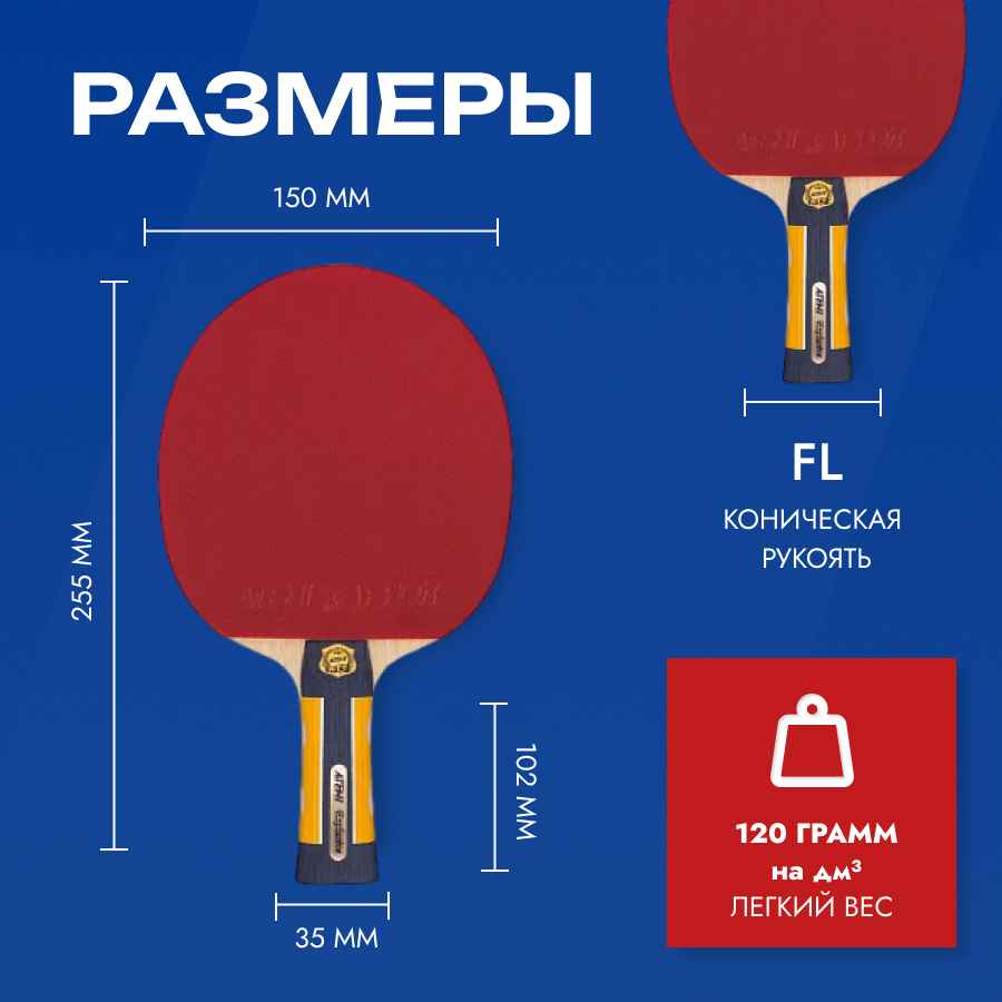| Плюсы: | Хорошая ракетка любительского уровня, удобно держать, качественные накладки, хороший отскок, опять таки для любительского уровня. |
