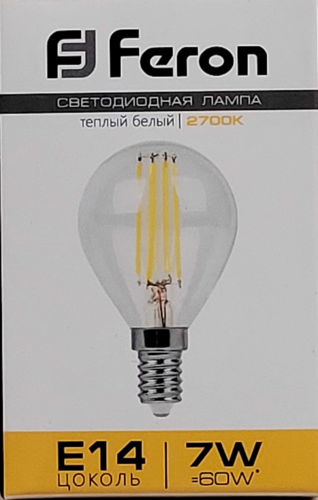 Лампа светодиодная LB-52 Шарик E14 7W 2700K, FERON 25874 (1 шт.)