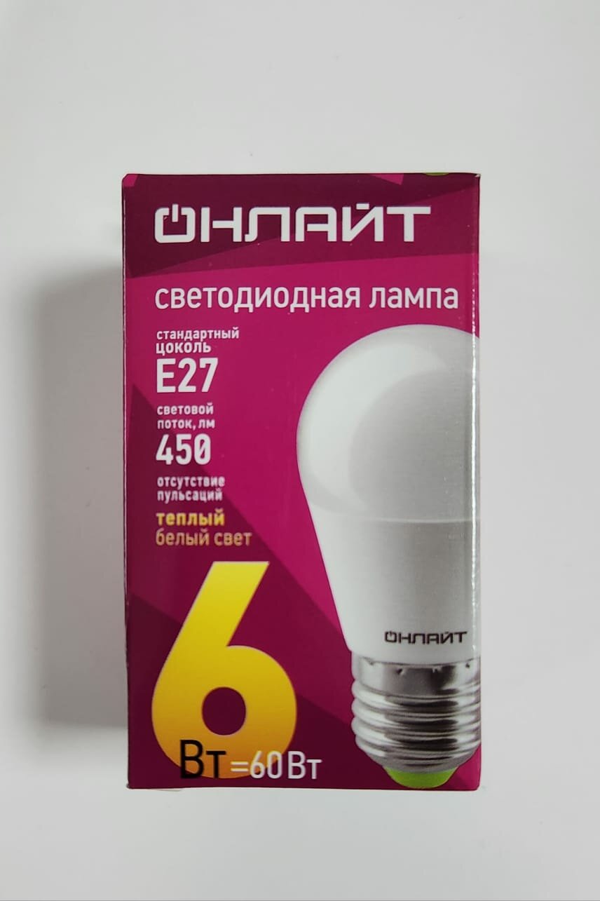 Лампа светодиодная E27, 6 Вт, 60 Вт, шар, 2700 К, свет теплый белый, Онлайт