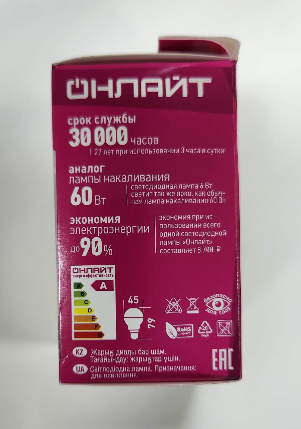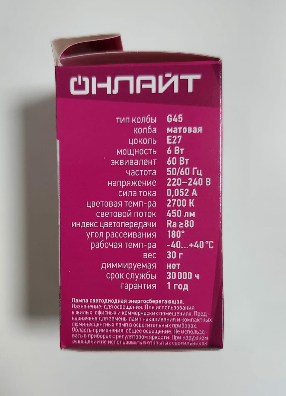 Онлайт шар G45 E27 6W(450Lm) 2700K 2K 76x45 ОLL-G45-6-230-2.7K-E27 71645 интересное: