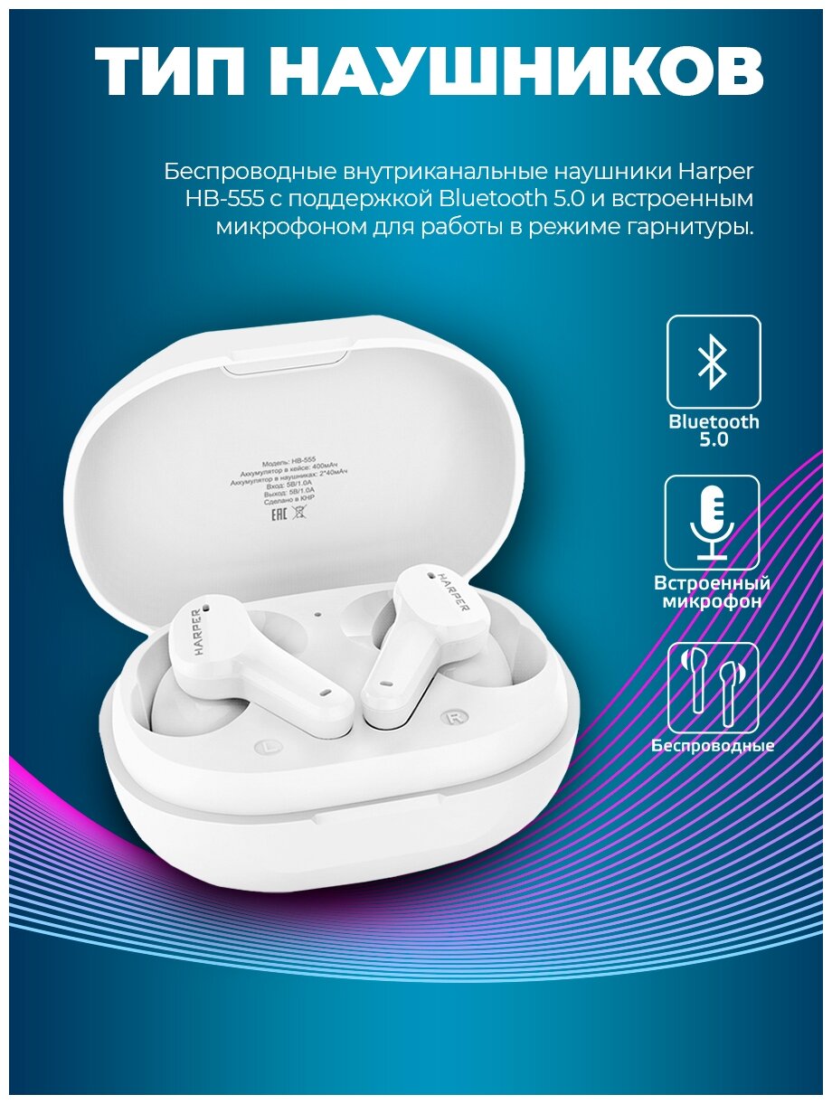 СохранитьНаушники с микрофоном Harper HB-555 White (Bluetooth 5.0) интересное: