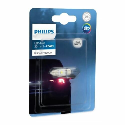 Лампа автомобильная светодиодная Philips Ultinon Pro3000 SI 11860U30CWB1 C5W 12V 0.6W SV8.5 6000K 1 шт.