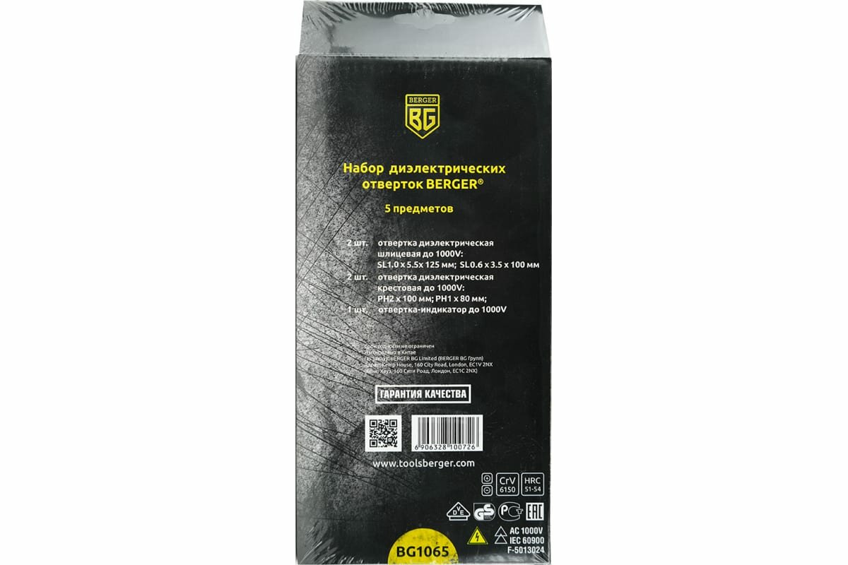 Купить Berger BG Набор отверток диэлектрических до 1000V 5 предметов Berger BG1065 .