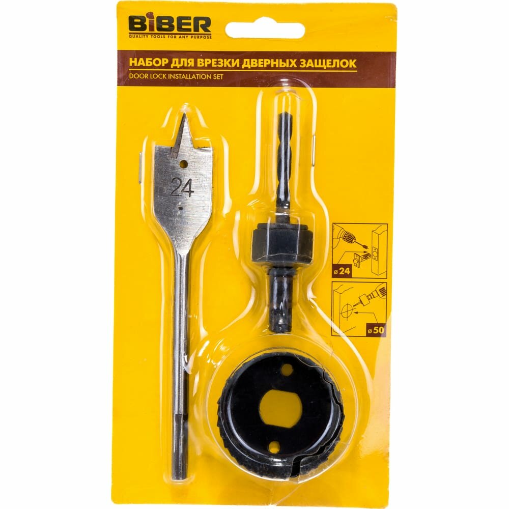 Набор для врезки дверных защелок (3 предмета; 24/50 мм) BIBER тов-156529