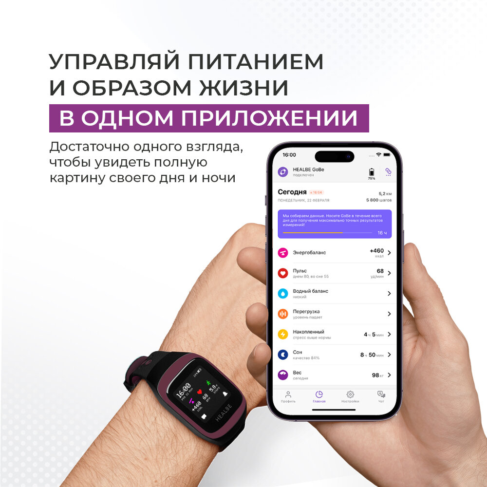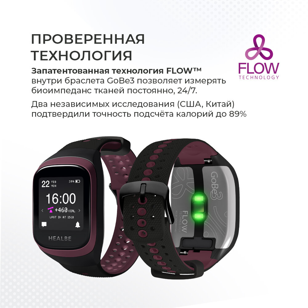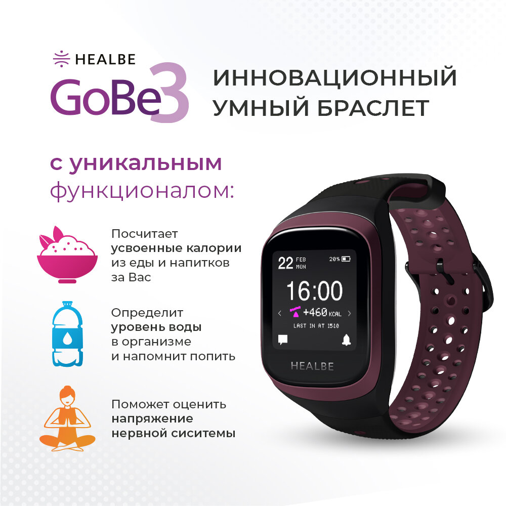 Умный браслет HEALBE GoBe3 — автоподсчет усвоенных калорий, трекер сна, стресса и водного баланса, не имеет аналогов