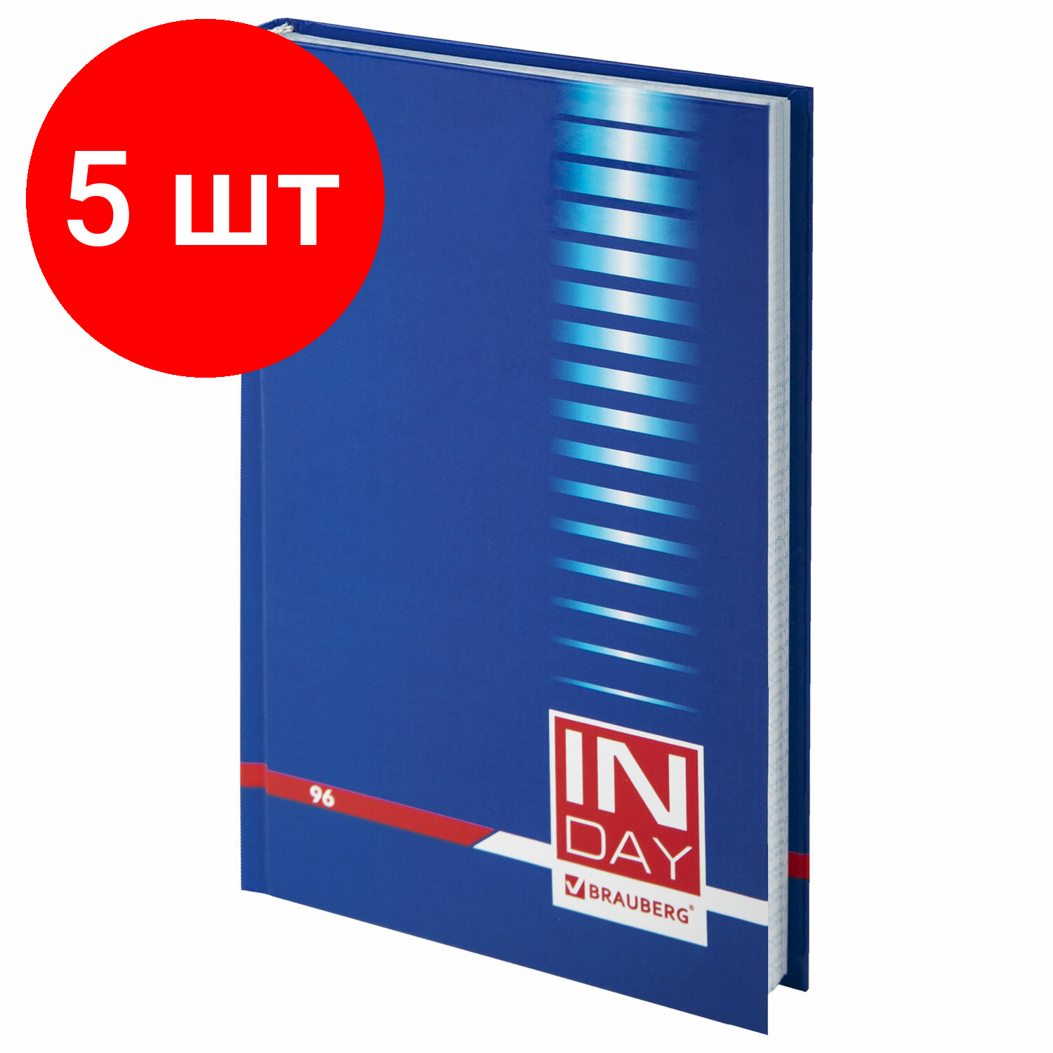 Купить Комплект 5 шт, Блокнот А5 (135х206 мм), 96 л., твердый переплет, ламинированная обложка, клетка, BRAUBERG, "INDAY blue", 121929