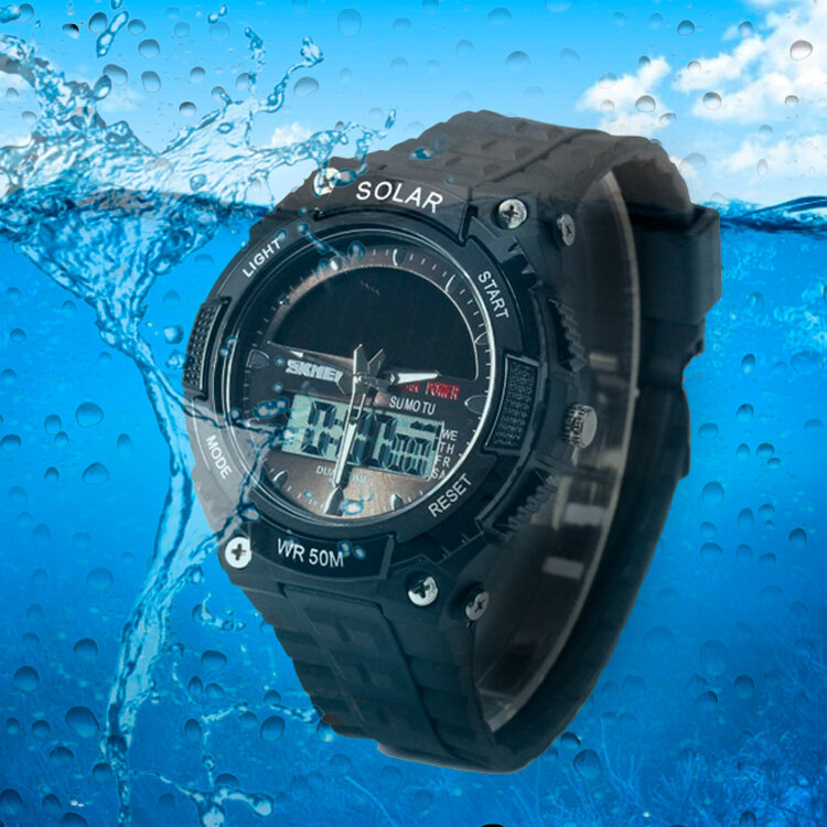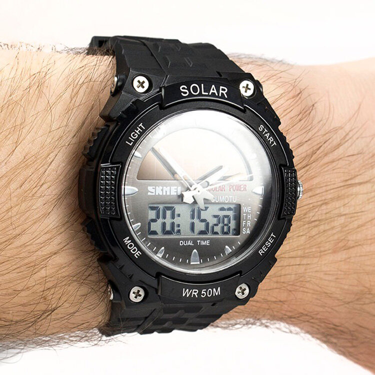 Купить Часы Skmei мужские, на солнечных батареях, водонепроницаемые, черные