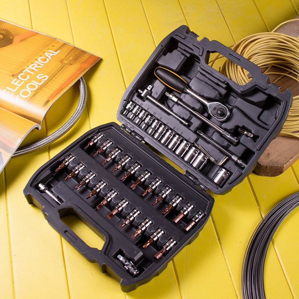 Набор торцевых головок и ключей Deli DL1046 46шт, 1/4",кейс (DL1046)