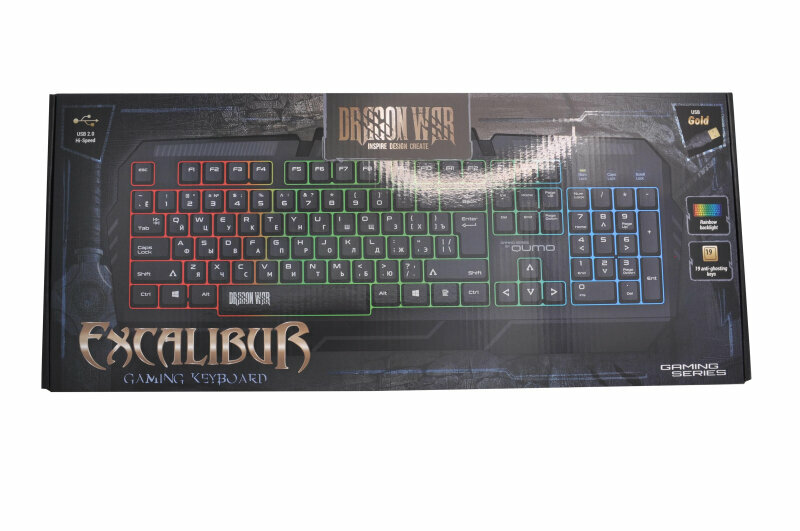 Игровая клавиатура Qumo Excalibur , проводная, 104, встроенная радужная подсветка