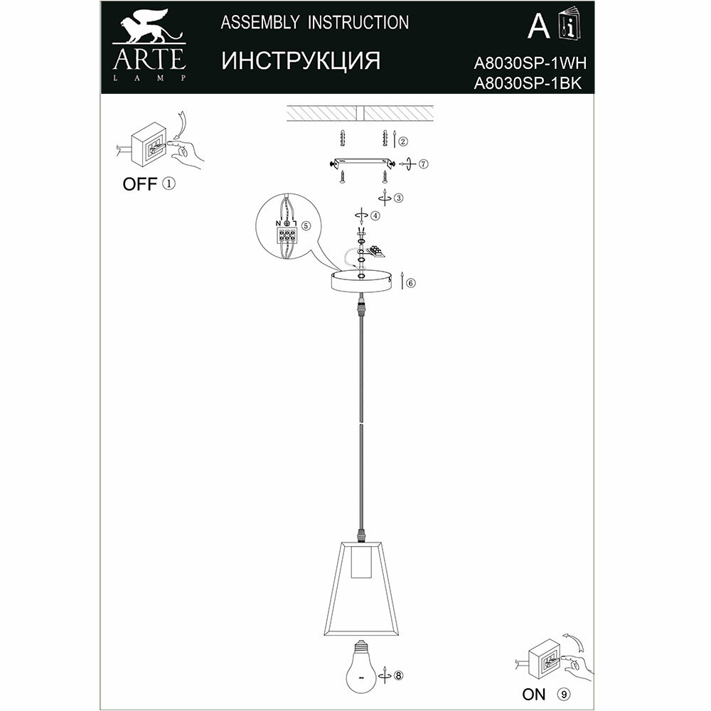 ARTE Lamp #ARTE LAMP A8030SP-1WH светильник подвесной