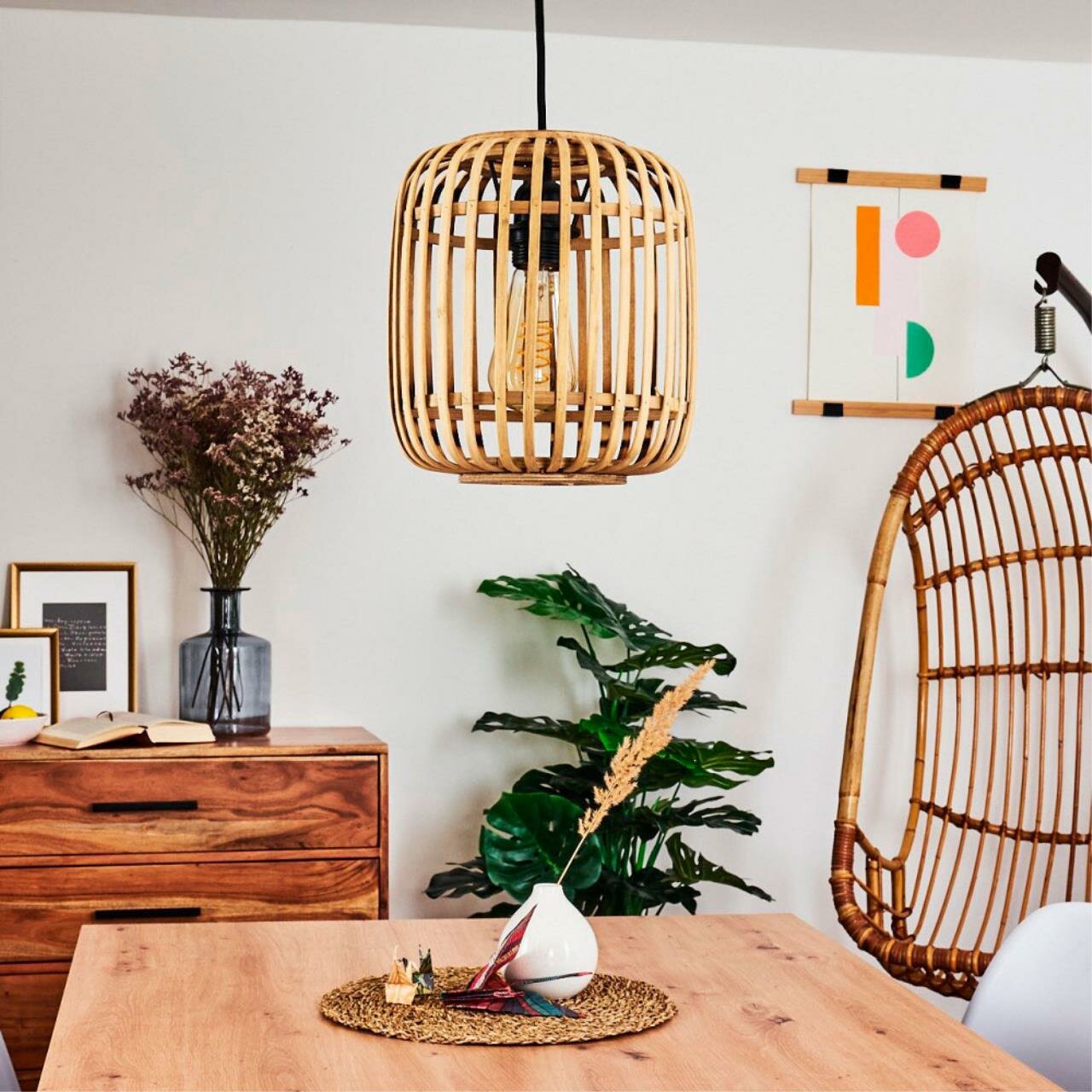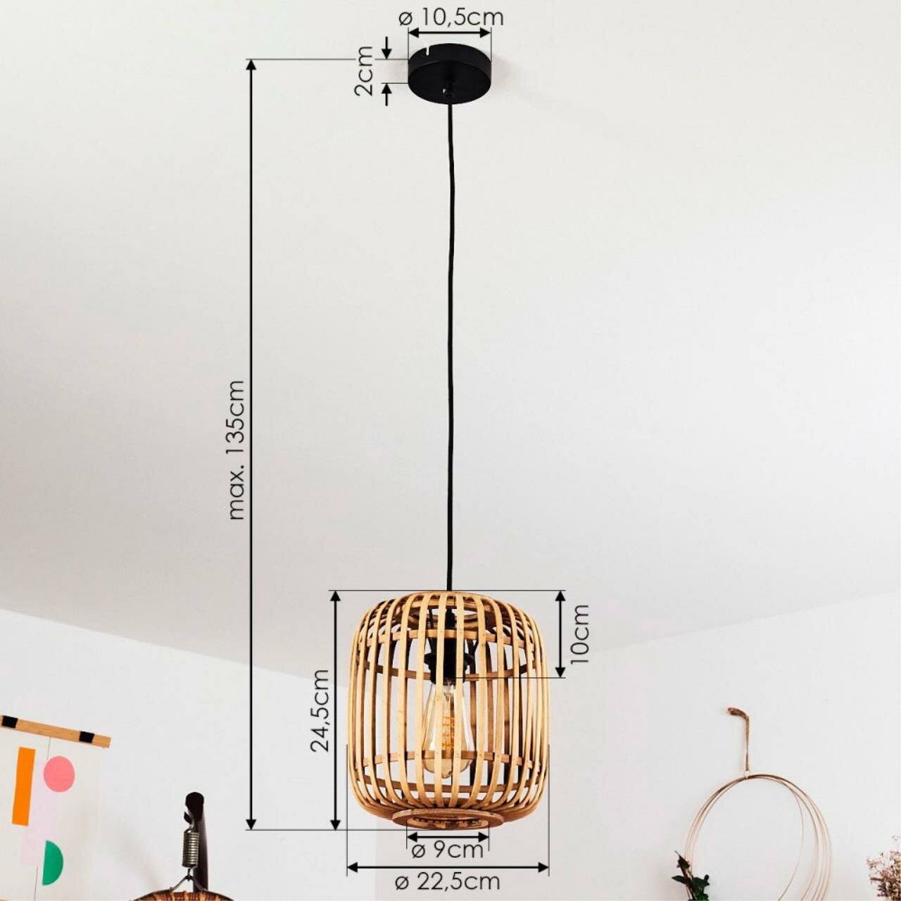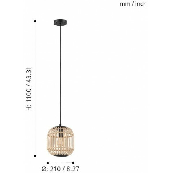 43231 Подвес BORDESLEY, 1x28W (E27), Ø210, H1100, сталь, черный/дерево, натуральный