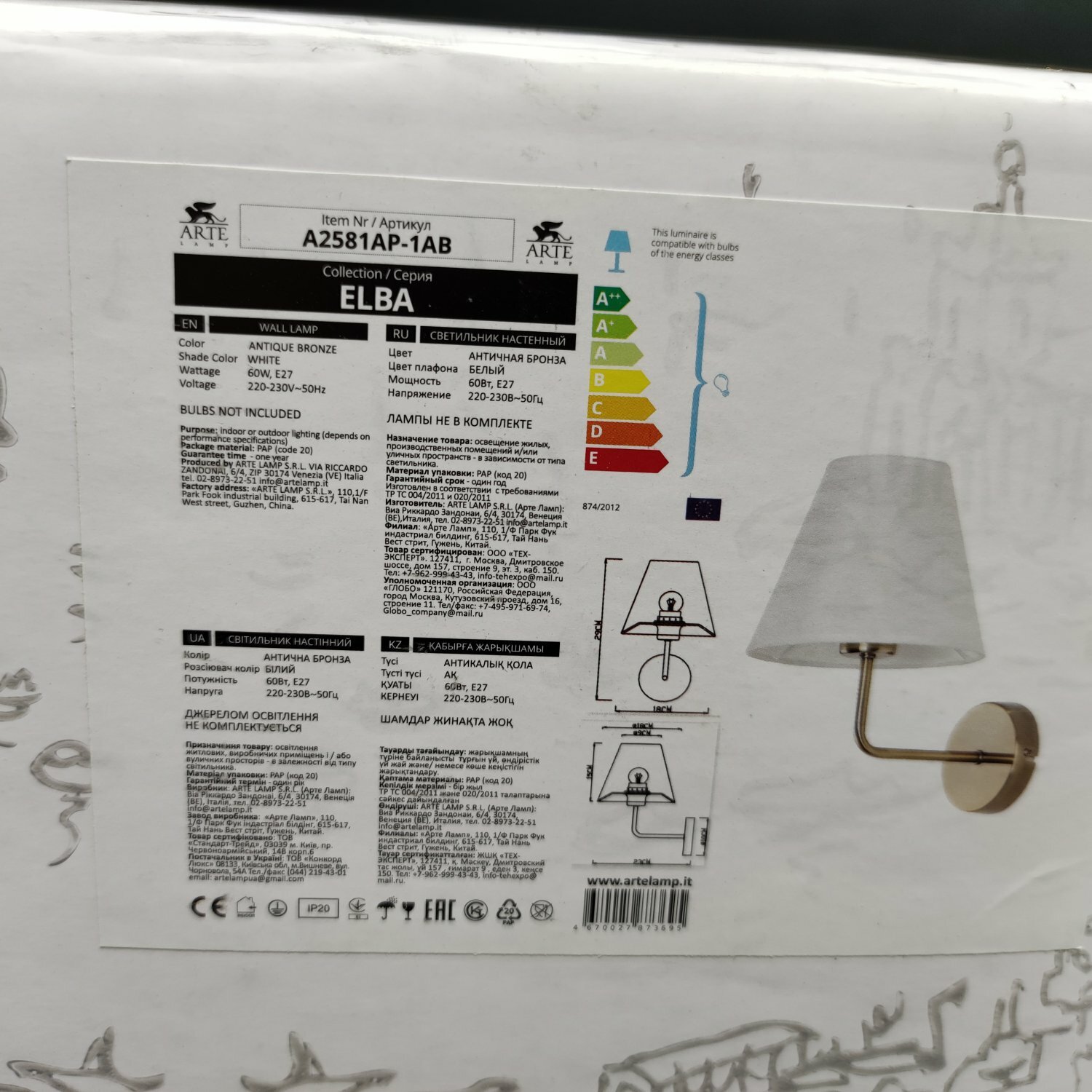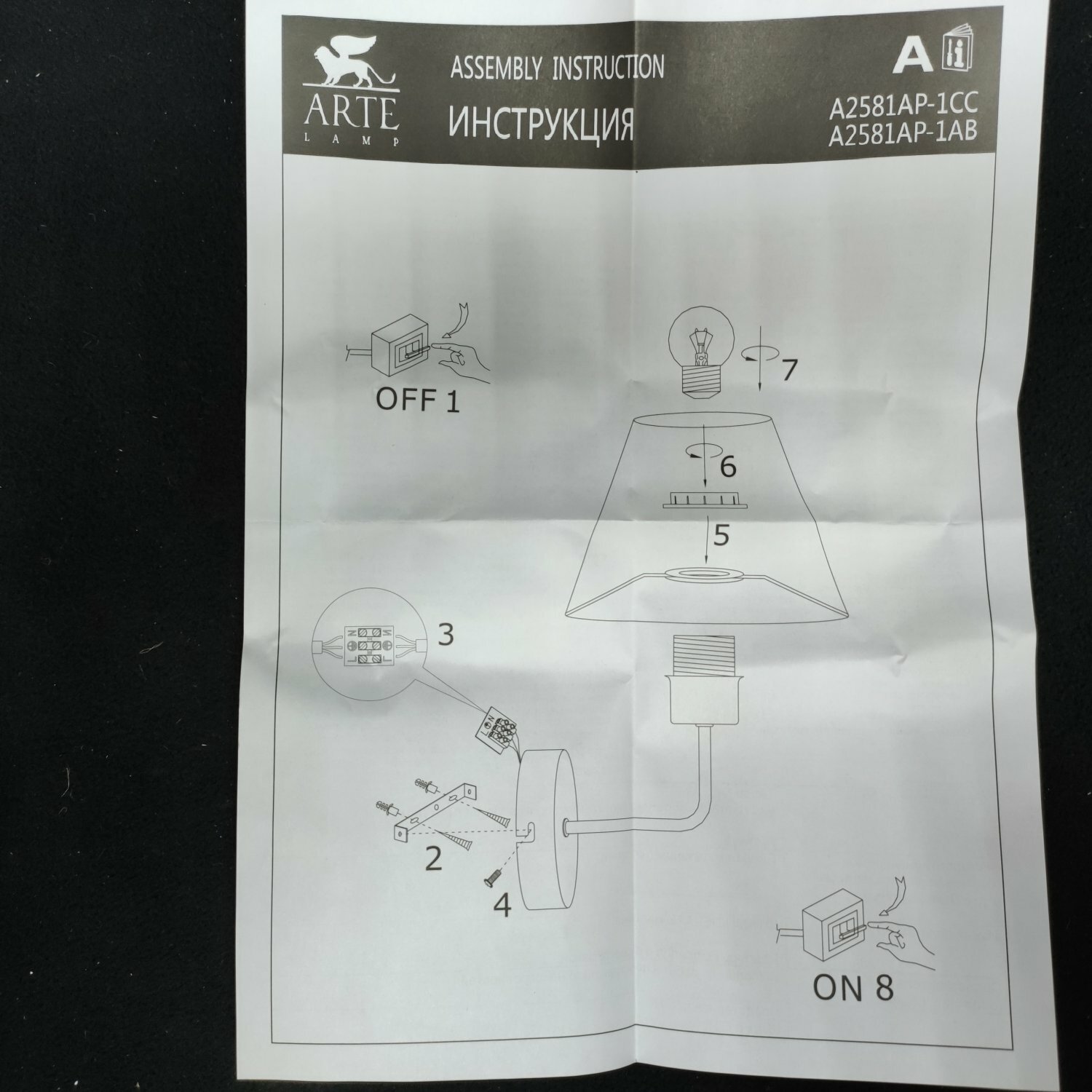 | Комплектация | бра Arte Lamp A2581AP-1AB |