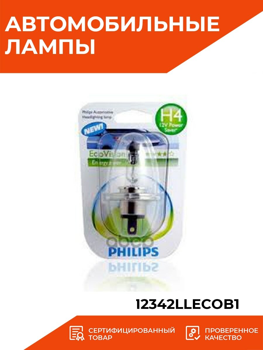 Лампа h4 12342 longlife ecovision 12v 60/55w (блистер 1 шт.) Philips 12342LLECOB1