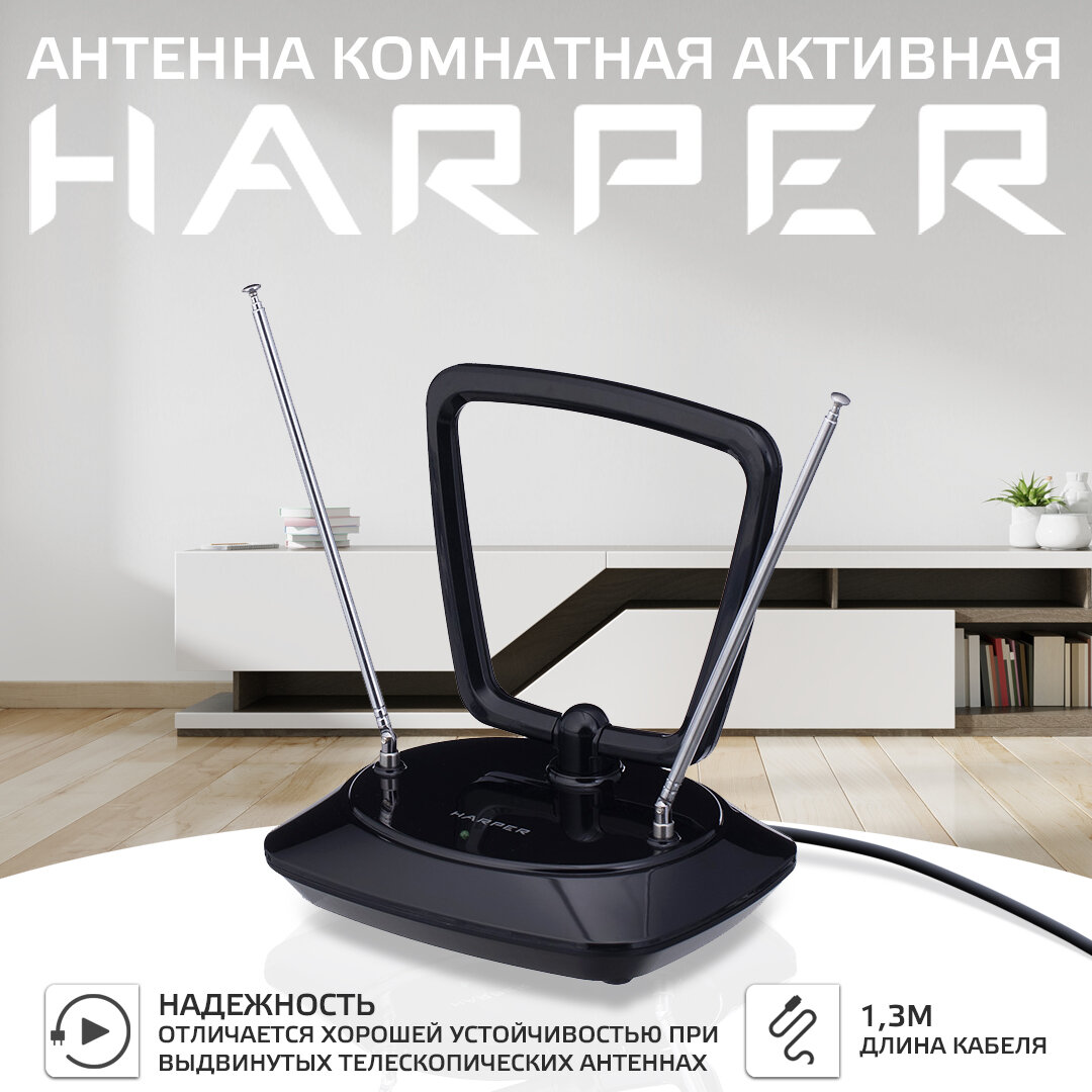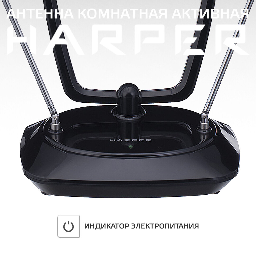 Антенна для телевизора комнатная активная HARPER ADVB-1415, черный