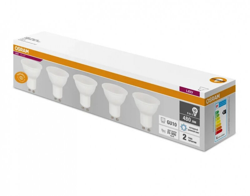 Упаковка из 5 светодиодных ламп LED Value LVPAR1650 6SW/865 230В GU10 RU OSRAM