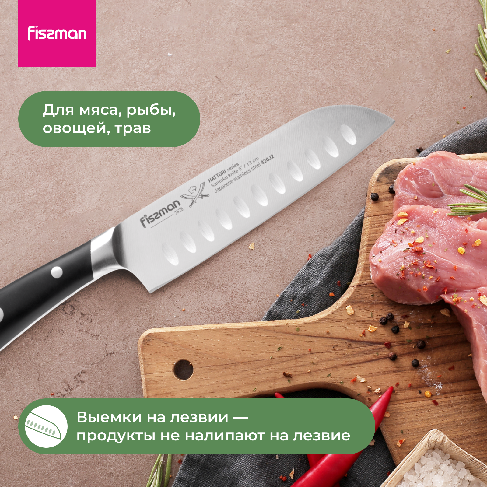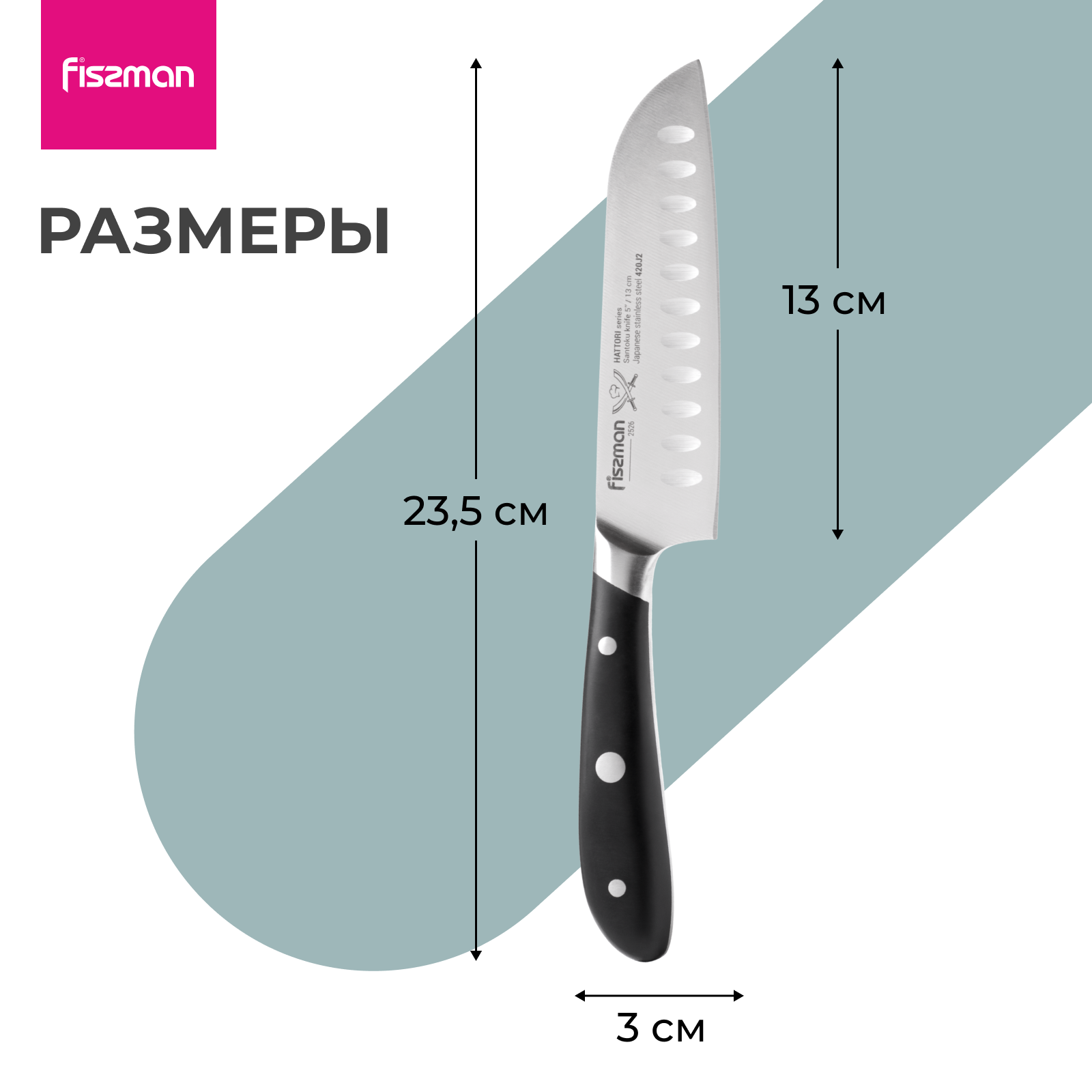 2526 FISSMAN Нож Сантоку 13см HATTORI (420J2 сталь) интересное: