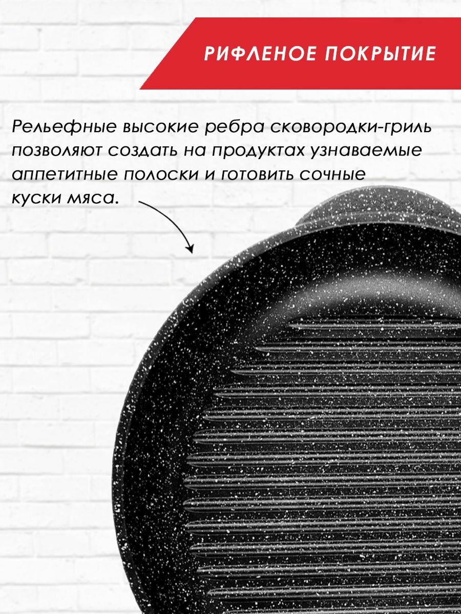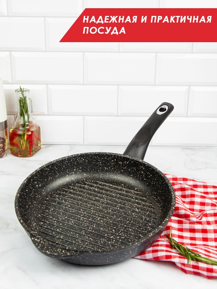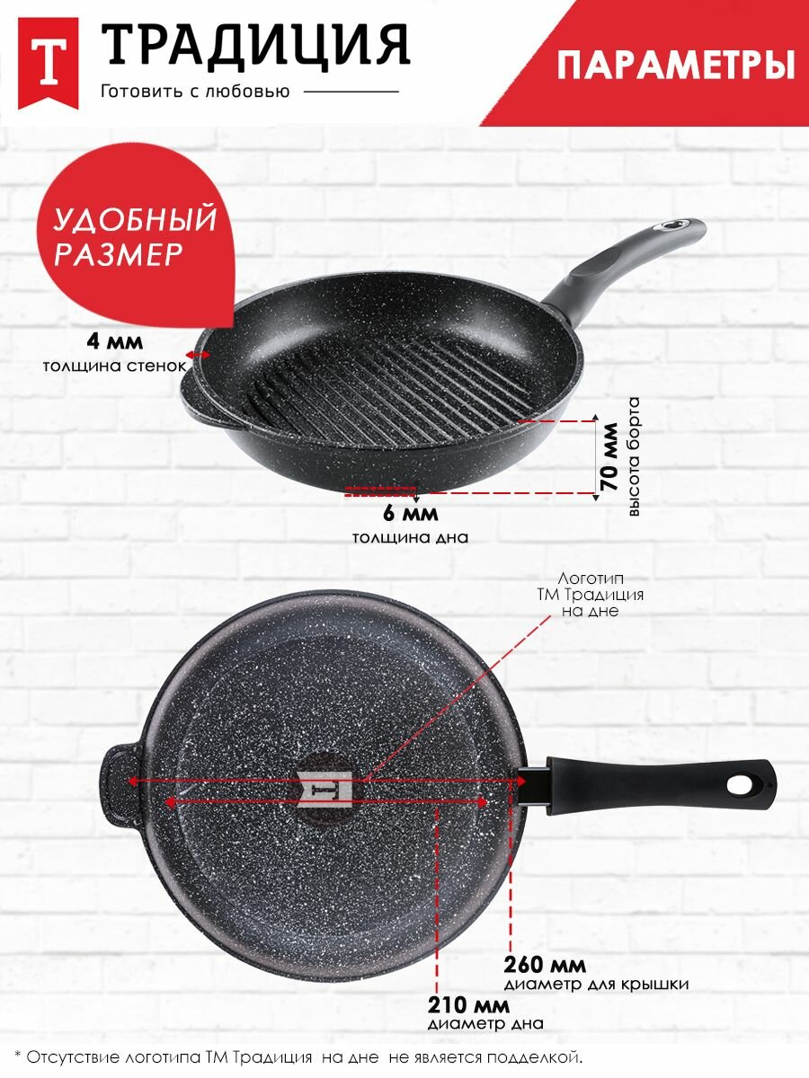 Сковорода-гриль а/пр литая 26см Гранит ТМ Традиция интересное: