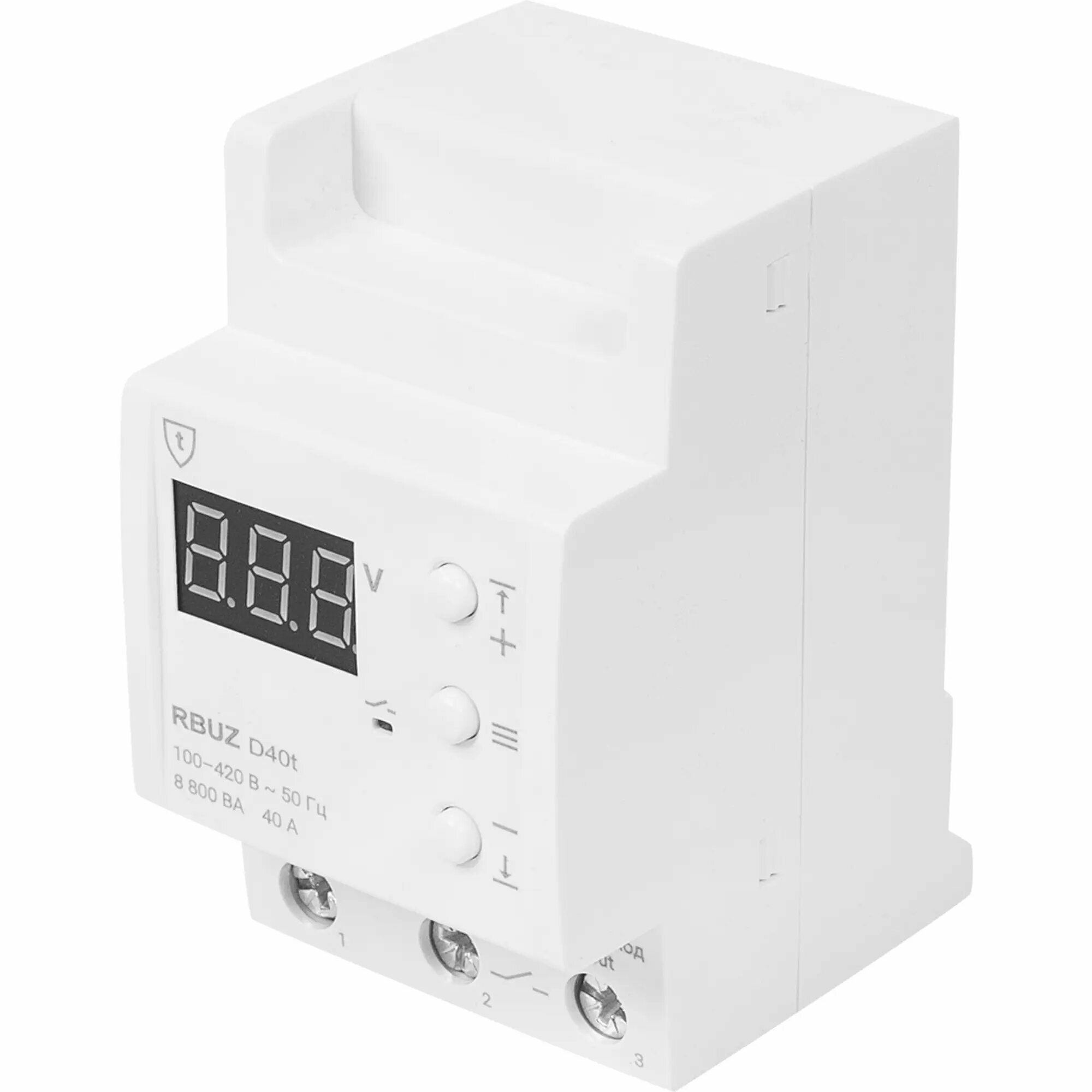 Реле напряжения Rbuz D40t термозащита. 40 А. 8 800 ВА. 100400 В. Настройка времени задержки вкл.