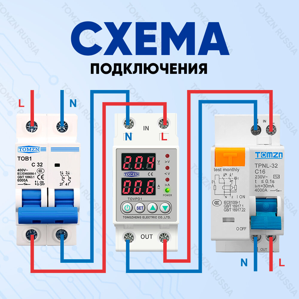 СохранитьРеле контроля напряжения TOMZN TOVPD1-80-EC с защитой от перегрузки по току и перенапряжения 80 А / Защитное устройство в DIN рейку интересное:
